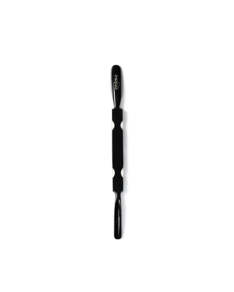 Un empujador de cutículas de doble punta, con un acabado fino y preciso, facilita la eliminación de cutículas y el levantamiento de los pliegues ungueales.