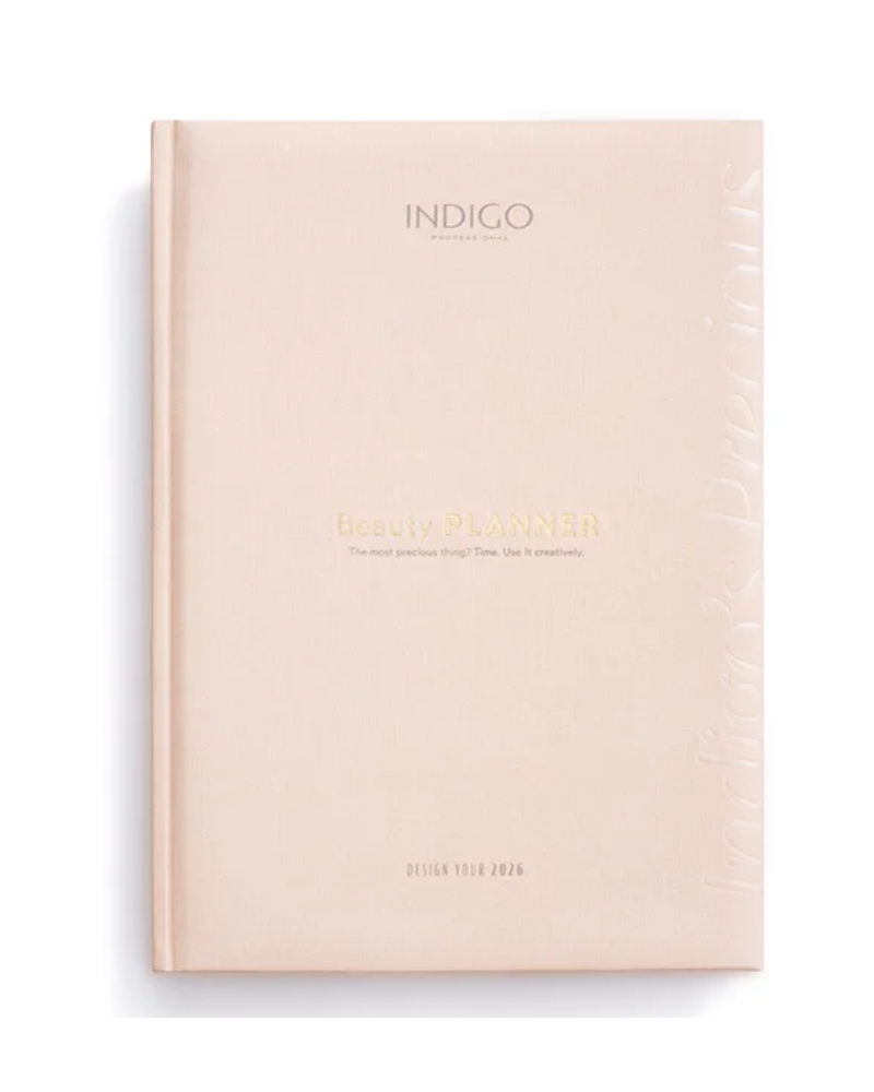 Relieve dorado de la palabra Beauty PLANNER en la parte frontal de la tapa