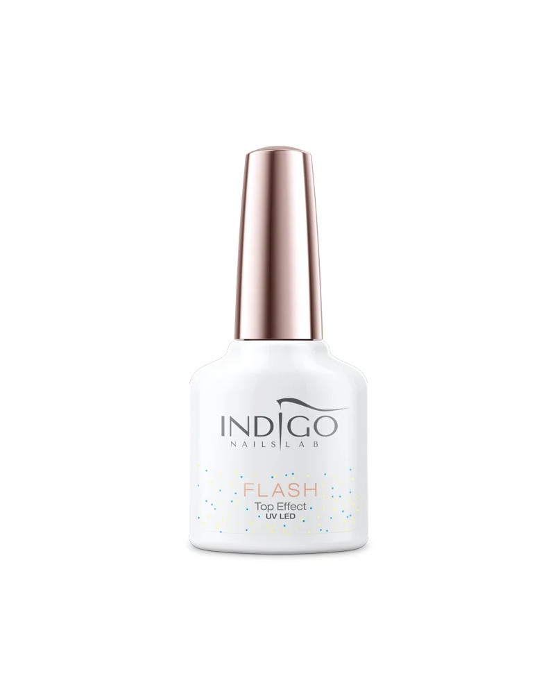 Descubre Top Effect Flash, un moderno top semipermanente con partículas, que es la clave para lograr un efecto espectacular. Gracias a su fórmula única con partículas de destello, Top Effect Flash es la solución perfecta para aquellas que quieren añadir un brillo delicado a sus uñas. Su base transparente, enriquecida con partículas de destello multicolor plateado, añade un efecto delicado, independientemente de la combinación de colores .