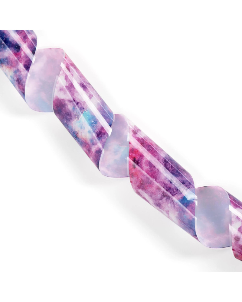 Transfer Foil en color rosa-violeta es nuestra sugerencia para crear nubes y cielos en tus uñas. Es una forma sencilla de hacer un diseño llamativo. Puedes reflejarlo localmente o en la superficie de toda la uña y también en decoraciones pintadas específicas.